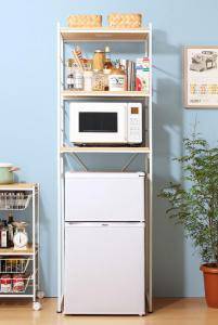冷蔵庫ラック スチールフレーム 木目調天板 幅58cm ( 送料無料 キッチン収納 家電収納 ゴミ箱収納 冷蔵庫 電子レンジ ラック スチール 食器棚 棚 省スペース 隙間 一人暮らし )【39ショップ】