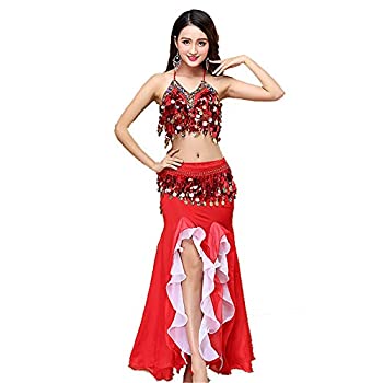 【中古】ベリーダンスドレス ベリーダンスの衣装セットセクシーな部族のベリーダンスの専門のダンス衣装 女性ダンス衣装 (色 : 赤 サイズ : M)