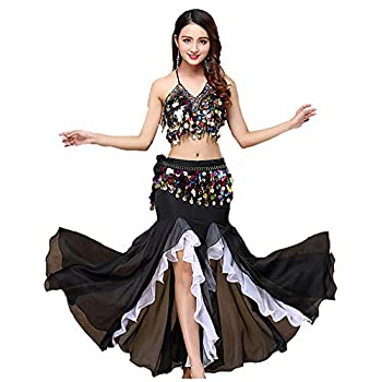【中古】ベリーダンスドレス シフォンベリーダンスドレスドレスインドのダンスパフォーマンスセット 女性ダンス衣装 (色 : ブラック サイズ : S)