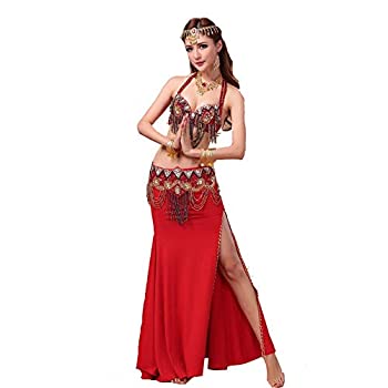 【中古】ベリーダンスドレス ベリーダンスの衣装セットセクシーな部族のベリーダンスの専門のダンス衣装 女性ダンス衣装 (色 : 赤 サイズ : L)