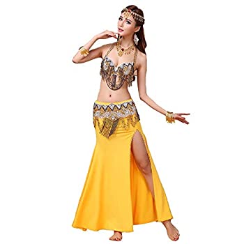 【中古】ベリーダンスドレス ベリーダンスの衣装セットセクシーな部族のベリーダンスの専門のダンス衣装 女性ダンス衣装 (色 : 黄 サイズ : M)